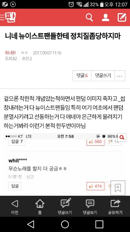 어제부터 진짜 ㅇㅌ에 댓 달고 ㅁㄱ 못하구 부들거라고 하지 좀 말자