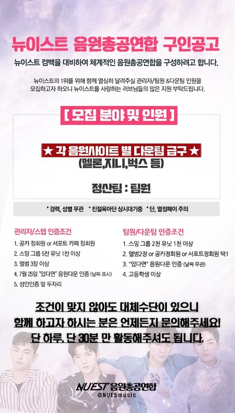 컴백 당일만 가능, 하루에 30분, 일주일 중 하루만 가능해도 섣불리 지원 부탁하신대!!!