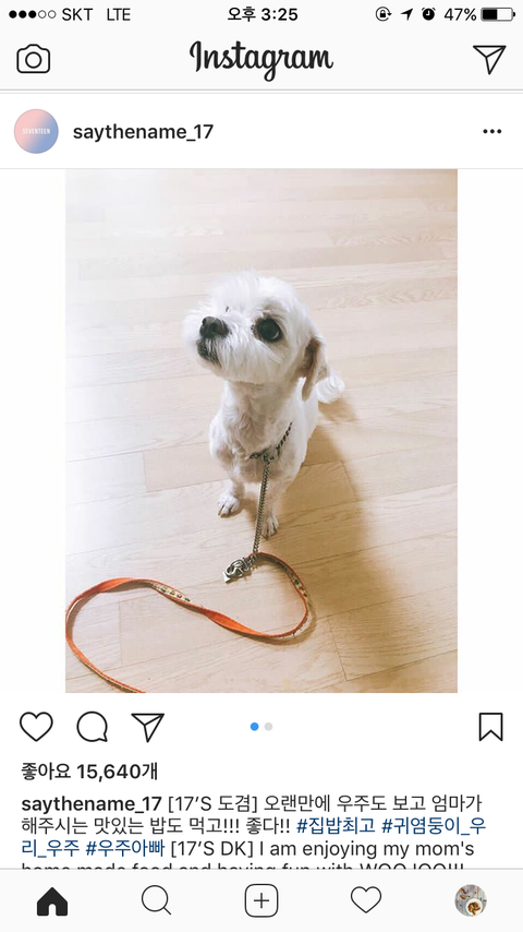 인별에 석민이네 강아지 사진 올라왔어 ㅋㅋㅋ