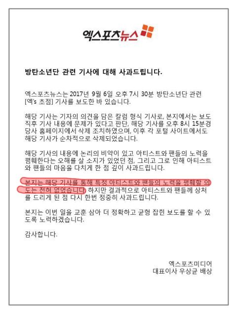 사과문을 쓸 땐 변명같은거 쳐 하지말고 글 쓰던가ㅋㅋ 전원 기자는 왜 안나오고 대표가 나서서 직접 글씀? 더 빡치게하네 그래서 어떤 징계도 안내리고 그냥 넘어가는거 뻔뻔하네ㅋㅋㅋㅋ