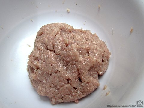 우선 반죽기에 고기 분쇄기를 달고 돼지고기를 갈아줍니다.