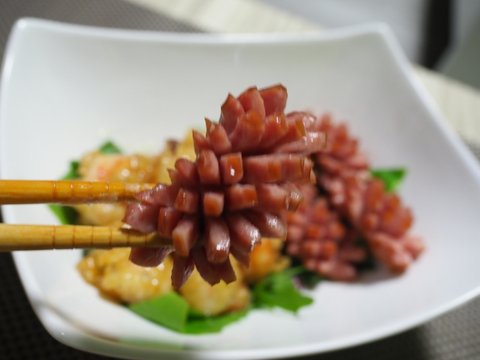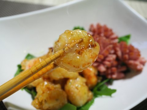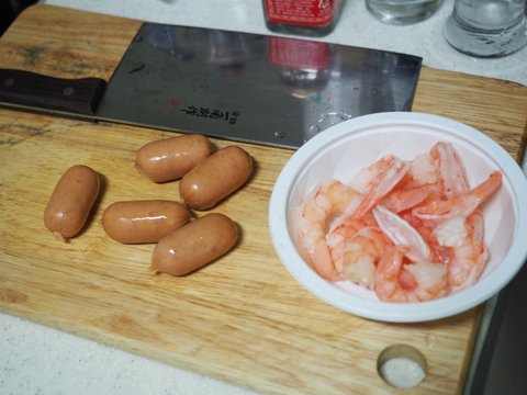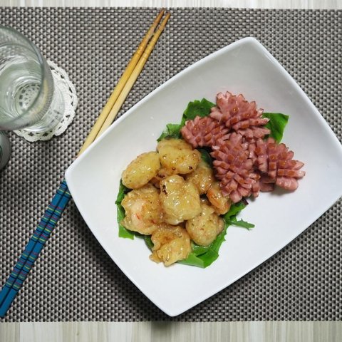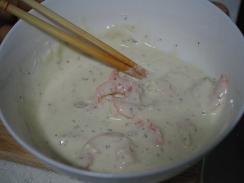 재료조차 간단하게, 새우, 소세지(개인의 취향), 튀김가루, 마요네즈, 설탕, 식초