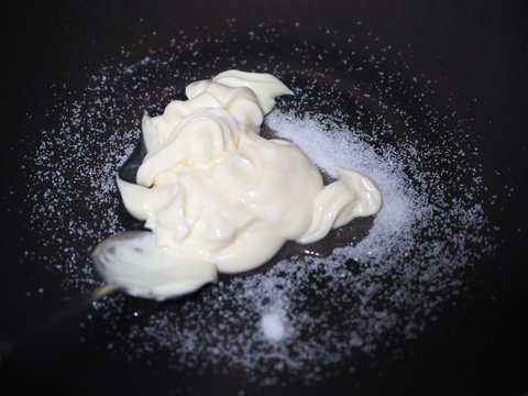 마요네즈 4큰술. 설탕 2큰술. 식초 1큰술을 넣고 약불에서 살살 저어 소스를 만들면