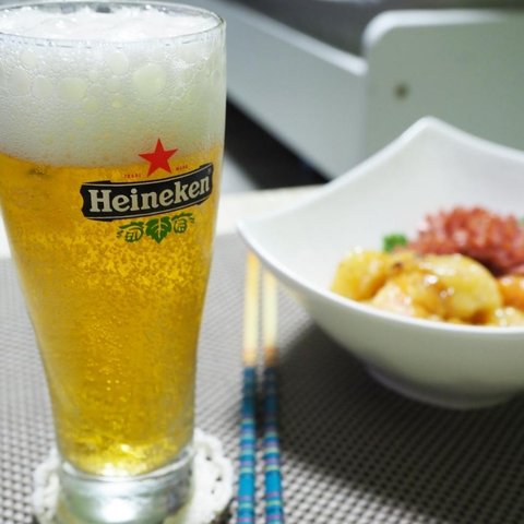 오늘은 하이네켄을 한잔 하는데, 얘가 워낙에 맥주도둑이라 튀김한개에 반캔씩 먹습니다 ㅜ ㅜ