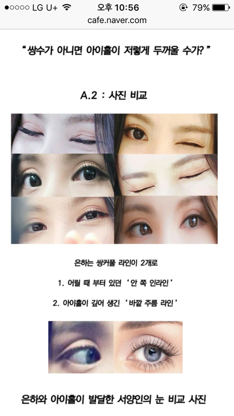 근데 안했다고 하기엔 아무리 크면서 얼굴이 변한다지만 인라인에서 아웃라인으로, 이웃라인에서 인라인&아웃라인 다 있는 짙은 쌍꺼풀로 변하는게 가능한지가 의문...