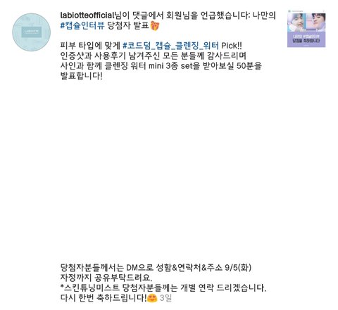 제목 그대로 ㄹㅂㅇㄸ에서 했던 인별 이벤트 당첨 후기예요! 일단 당첨 되었다는 거 인증하려고 ㄹㅂㅇㄸ 계정에 언급 되었다는 화면 캡쳐 해왔어요 :D! 계정은 전부 가렸구요!