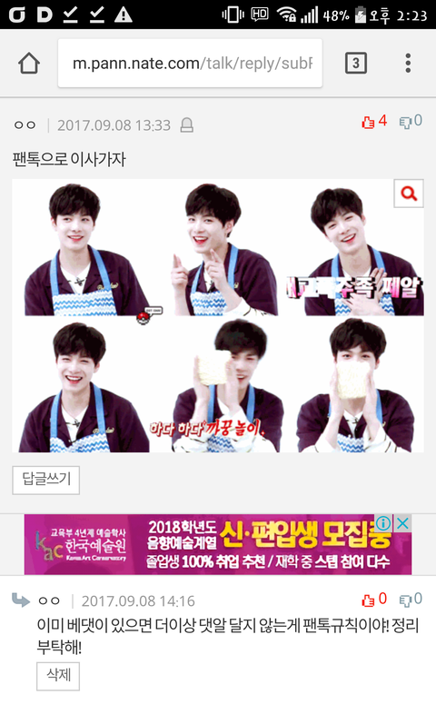 팬톡 초대는 베댓 딱 1개야!