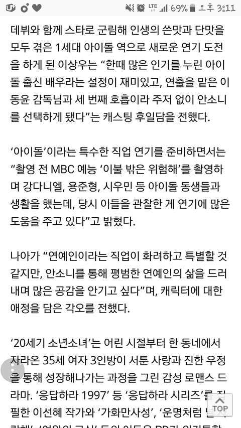 이불밖 같이 찍었던 이배우님 이번에 아이돌 배역 하신대!