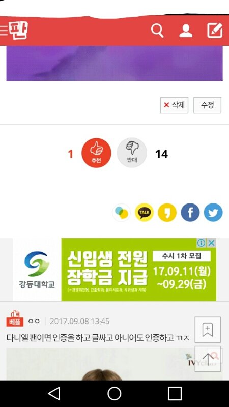 안녕 나 점심 때 다니엘 열어줘 움짤 글 올린 타팬(잡덕이야)인데 현생사느냐 이제야 글 확인했는데 댓도 그렇구 비추도 그렇구 좀 많이 그러네