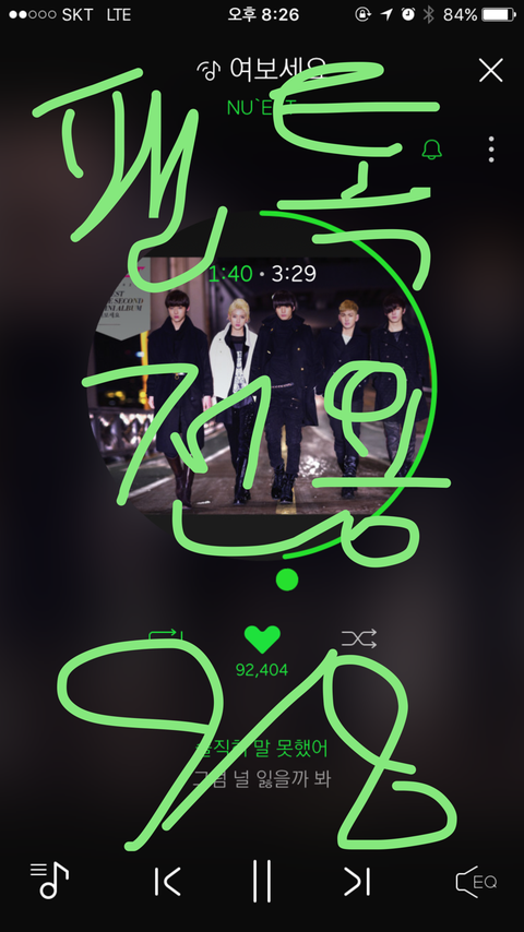 러브들 힐링됐던 뉴이스트 가사 한줄 적어봐