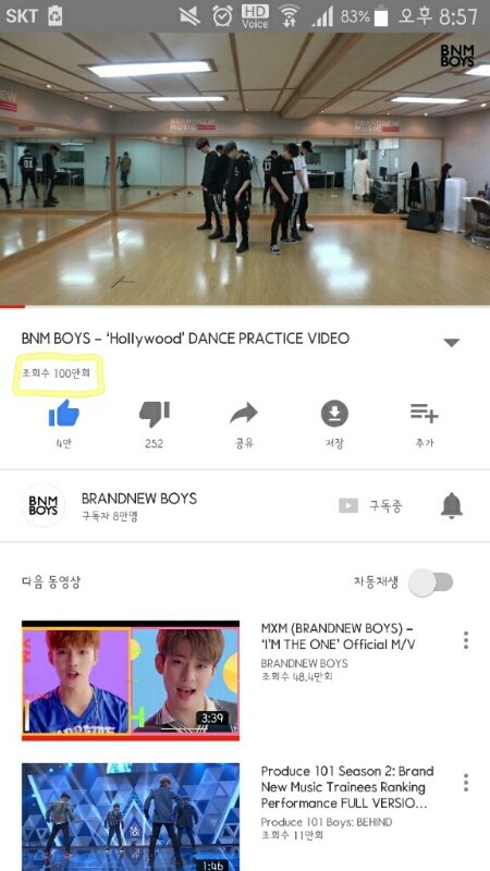 너튜브 할리우드 조회수 100만 넘었어❤