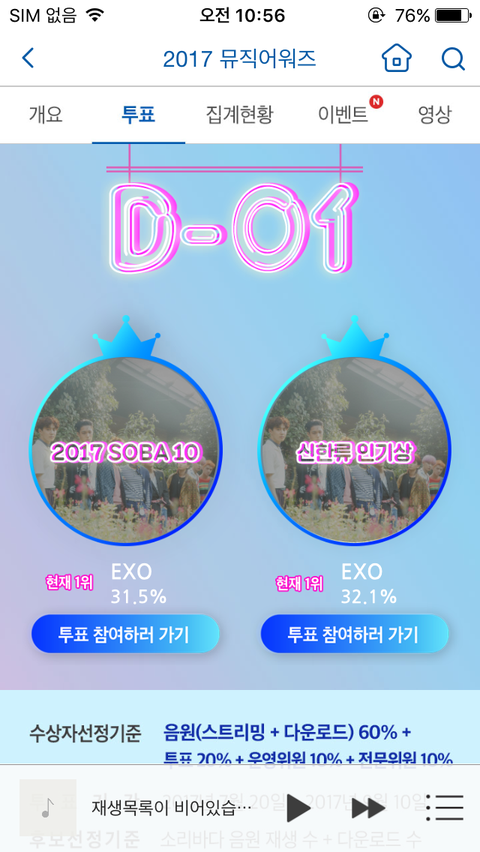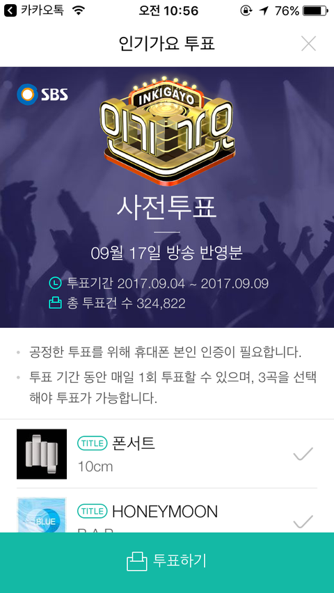 빨리하셈 ㅠㅠㅠ 인기가요 사전투표는