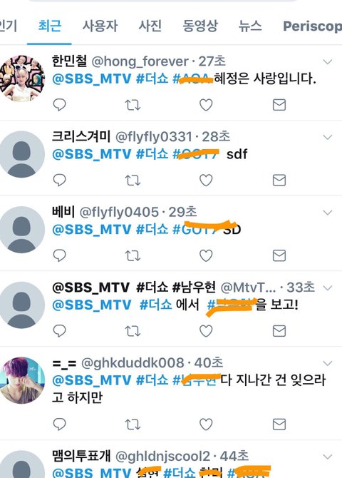 예) @SBS_MTV #더쇼 #MXM 암더원으로 대박나자