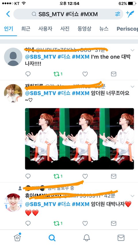 예) @SBS_MTV #더쇼 #MXM 암더원으로 대박나자
