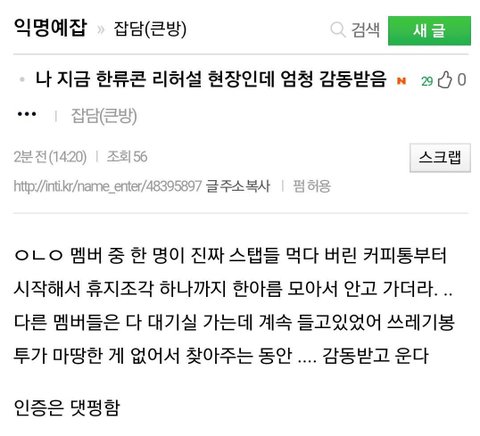 오늘자 민현이 미담이라고 저희 동네에 올라온 글인데 정없이 좌표찍는 거 보다 러브들도 보고 뿌듯해하시라구 직접 올리게 되었어요