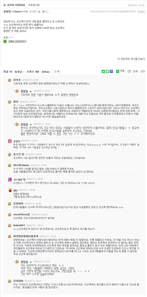 범죄기사 갖고와서 동족이라며 범죄자 옹호는 일상다반사