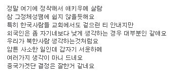 국내 인구 약70만명(불체자 제외)인 조선족들의 사고방식이 어떤지