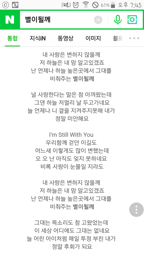 노래가사가 울잉피한테 해주고시픈말ㅜㅜ