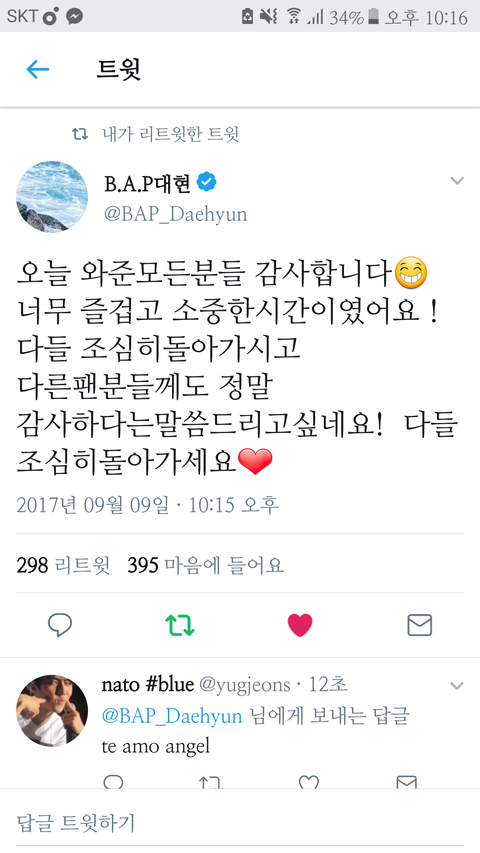 진짜 오늘 라이트분들 아니였으면 그냥 그저 그런 하루 그저 그런 행사따위가 됐을뻔 한 것을 멋지게 살려놓으셨어요 말로도 표현이 안될만큼 감사드려요 덕분에 베이비와 비에이피는 큰 감동을 받았답니다♡ 지금은 작은 팬덤 인지도가 부족한 그룹이지만 큰 힘 받아 더욱 성장하는 베이비와 비에이피가 될껍니다 모두모두 사랑해요♡