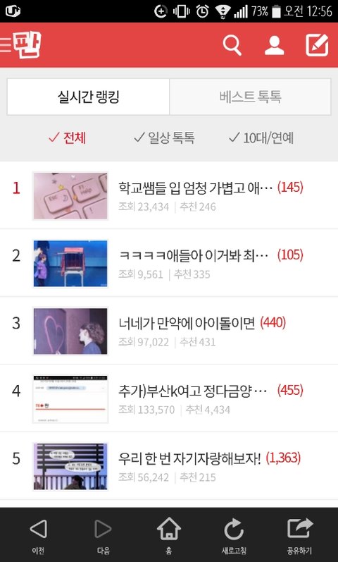 +)순위보고 놀람...!다들 학교생활하는거 똑같구나