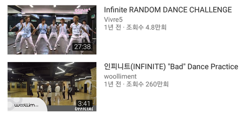 2010년과 2016년(배드 안무영상은 되게 늦게 올라온 걸로 기억)