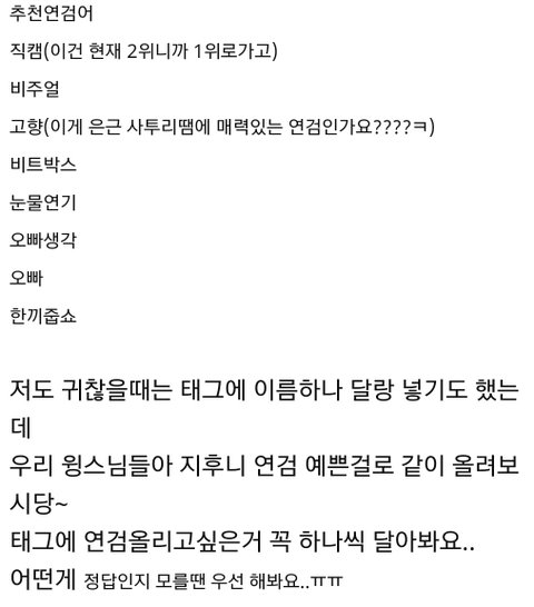 연검정화에 태그 몽땅 때려놓고