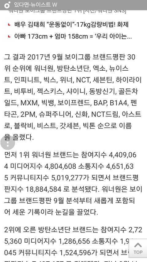 우리 9월 현재 보이그룹 브랜드평판 4위래