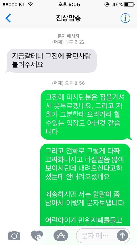 후기라고 써놨지만 저 글을 쓴이후에 더이상의 문자는 오가지 않았습니다.