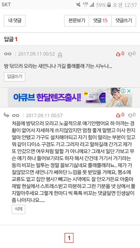 제가 지금 좀 예민해져서 그냥 쿨하게 넘어갈 수 있는 댓글에 날카롭게 받아치긴 했지만 그냥 좀 짜증나네요...