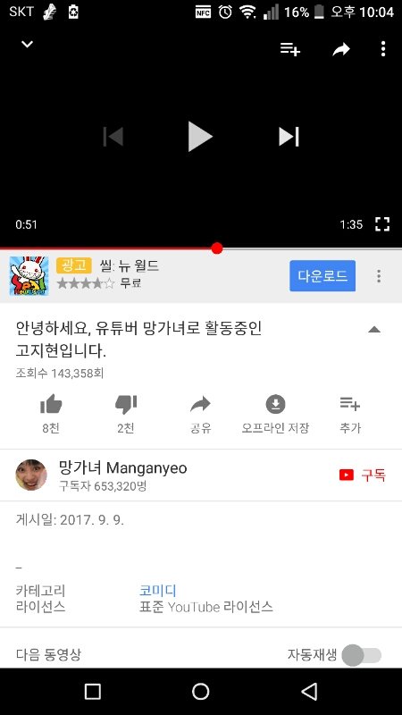 피드백영상을 봤는데 카테고리 코미디로 되있고 사이비 해명영상을 올리라니까 해명영상을 해명하고 있어 ㅋㅋㅋㅋㅌ 거기에 "망가녀 고지현 입니다" 랑 "망타쿠 분들"을 이걸 딴 사람으로 바꿔서 만능으로 쓸 수 있을꺼 같음 진짜 "빨리 해명해야되니까 대충적어야지..." 이런느낌 성의없어 진짜 망가녀 전에 좋았는데 이런거 보니까 진짜 생각이 없나봐 지 말로는 그런사람 아니라고는 하지만 그래보이는걸 어쩌라는건지... 진짜 별로다