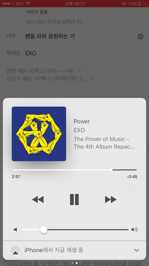 공방 때는 이엑소! 파아~~~워! 'ㅅ'