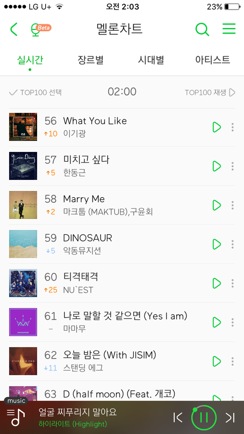 확실히 새벽이라서 그런지 순위가 쭉쭉 오른다 다들 열심히 스밍 돌리고있나보네 착해 얼찌말은 66위! 낮에도 이만큼 안정권이면 좋겠다 순위 뚝뚝 떨어지는거 더이상 보고싶지않아ㅠㅠ