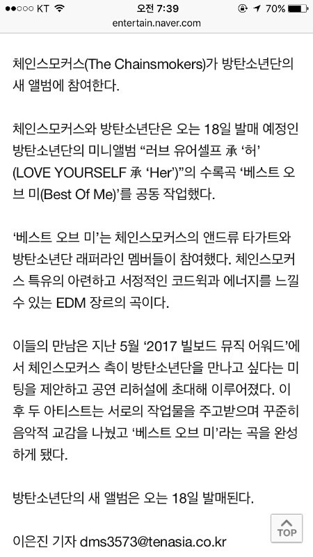 글고 방탄이랑 콜라보
