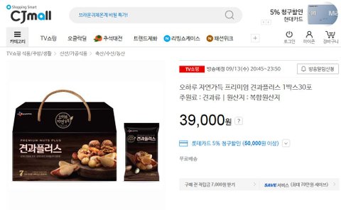 cj오쇼핑에서 오하루자연가득 견과플러스인데