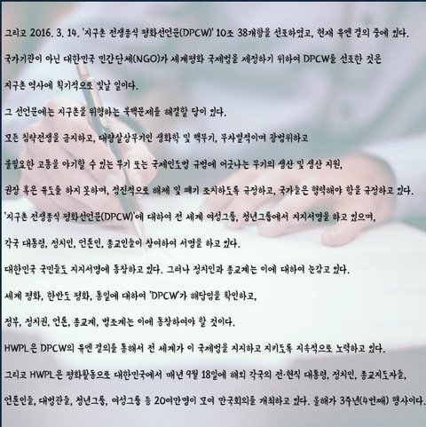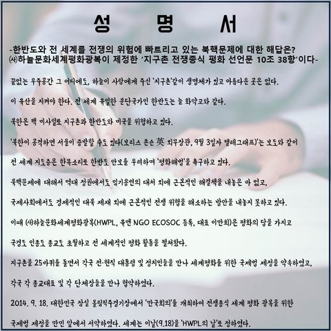 최근에 HWPL에서 발표했던 성명서가 아직도 잊혀지지 않는데요.
