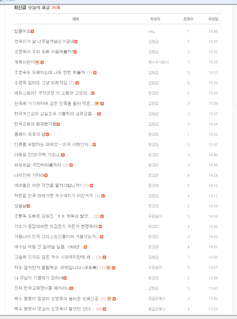 그리고 이건 조영욱이 땅꼬마 라는 이름을 쓰면서 일요일 오전 11시 무렵 동안 순식간에 도배질 한 행동거지