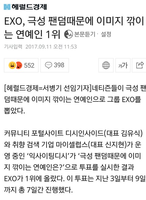 EXO, 극성 팬덤때문에 이미지 깎이는 연예인 1위