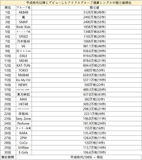 1989년 헤이세이시대 시작 이후 데뷔한 아이돌그룹들