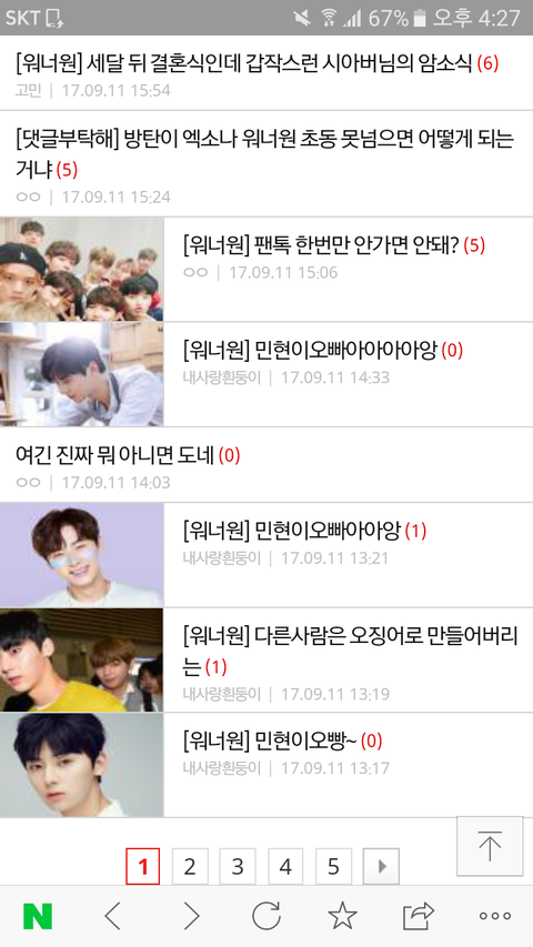 니네오빠글을 쳐올리냐 이번이처음이아니라 저번에도 계속 올려서 그만좀올리라했는데 한동안잠잠하더니 또나타남 그래 니네오빠잘생겼고좋으니깐 그만올려 시.발아좀ㅜㅠ 저번에는 니땜에 몇페이지나 넘겨야지글볼수있었다 ;; 팬톡가~ 다신나타나지마~ 러브야~