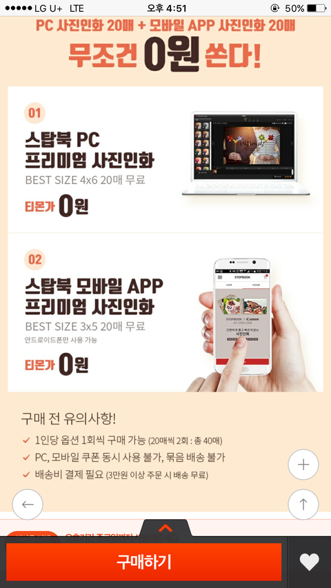 배송비만 내면 인화비는 무료래