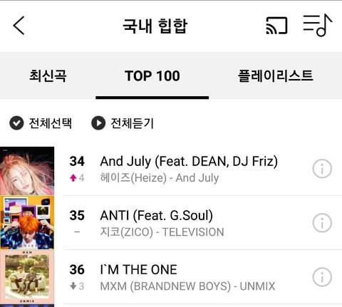 엠/넷 실시간차트는 못들어왔지만 우리 힙합부문에 무려 6곡 다올라왔어 ㅜㅜ 다른사람은 모르지만 난 너무기뻐 쇼미다음 이쪽 무지 쎈 음원들 많은데 당당하게 줄을 섰어 ㅜㅜ 우리 좀더 힘내서 실시간 올라가보자!
