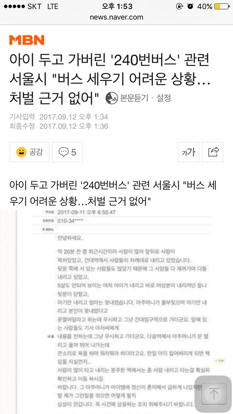 "240번 기사"라는 제목으로 페북, 블로그, 카페 등 SNS에 기사로 올라와있는 것을 보고 우선은 너무 놀랐습니다.