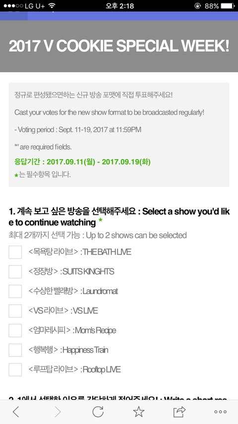 뿌앱에서 보고싶은 프로그램하고 보고싶은스타 투표하는간데 아 무 프로그램 산택해서 뉴이스트라고 많이써서 울애들 볼수있게 투표하러가자