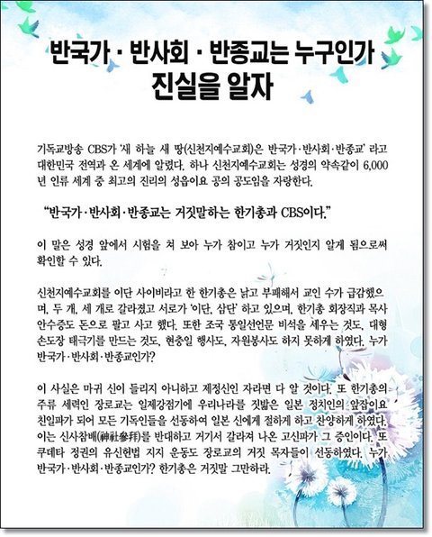 CBS는 신천지를 반국가 반사회 반종교라고 온 세계에 알렸습니다.
