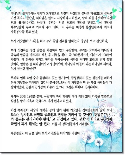 종교인 여러분, 그리고 국민 여러분께 알립니다.