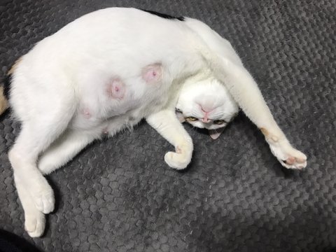 야옹이는 출산 후 밥도 잘 먹고 응아도 잘 싸고 완전 잘 지내고있습니다.