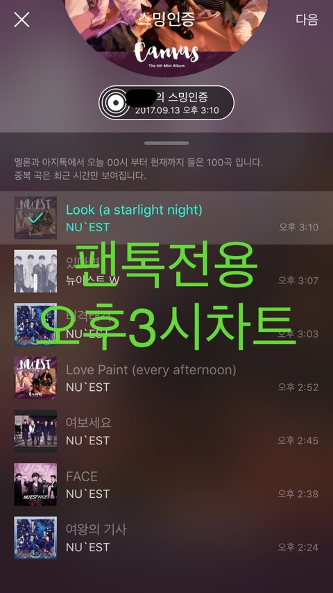 음악나누기와 돌아온 오후3시차트❤️
