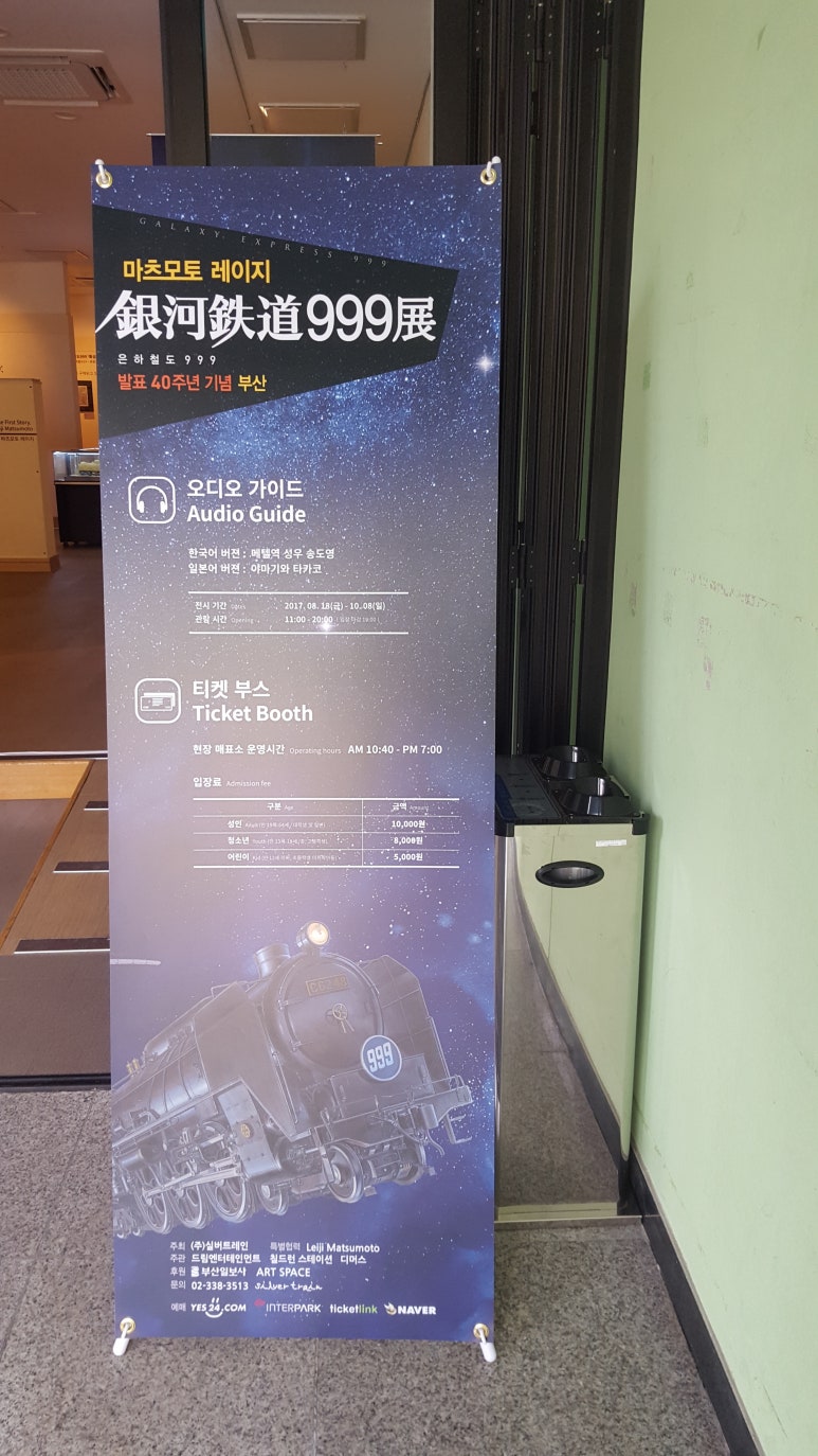 시민공원 지도를 집어들던 중 발견한 은하철도 999전 플랜카드 & 리플랫! 살살 산책하며 가면 될 거리라 한 번 가보기로 한다.