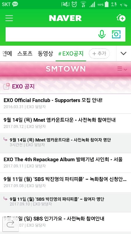 이렇게 네2버 배너?에 엑소 공지 띄우는건데