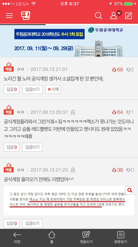 오늘의 팬톡